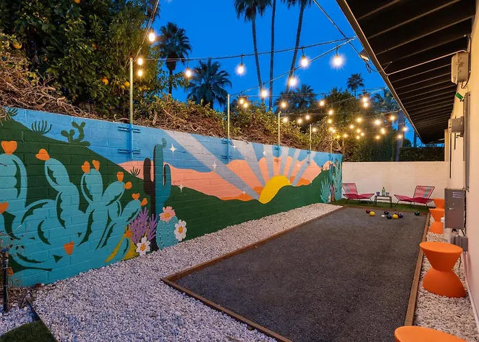 Diese Villa in Palm Springs liegt ein paar Schritte entfernt vom Palm Springs Convention Center, während Feel Good Spa nur 150 Meter von der Unterkunft entfernt ist. Das Palm Springs Art Museum ist 25 Minuten zu Fuß von der Unterkunft entfernt und der Flughafen Palm Springs ist 5 km von der Villa entfernt.